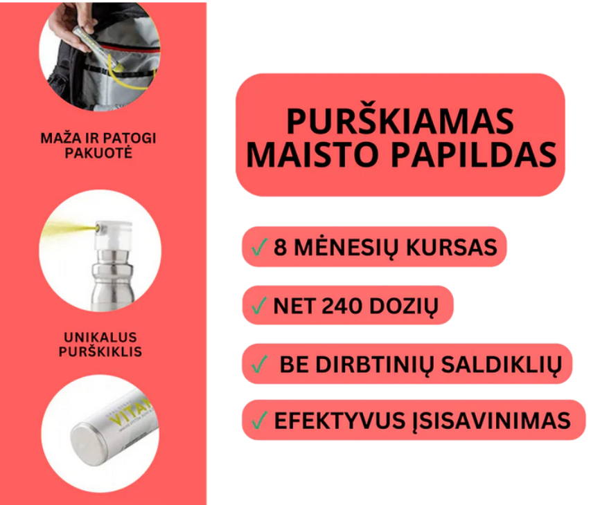 Purškiklyje yra 13,5 ml arba apie 240 purškiamųjų dozių (~ 2 mėn. poreikis)