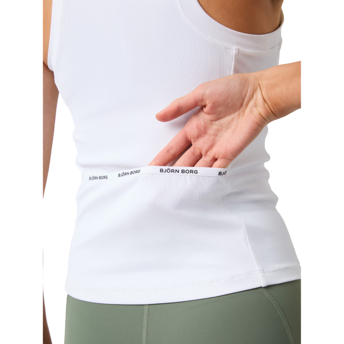 „Björn Borg Ace Rib Tank Pocket“ tai stilingas briaunuotas treniruočių trikotažas moterims