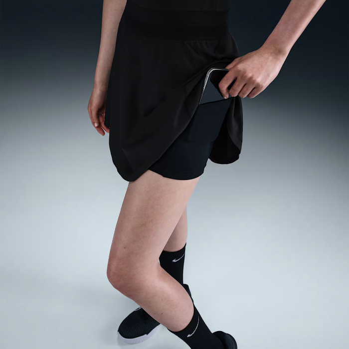 Žaiskite užtikrintai ir stilingai su „NikeCourt Ace Advantage“ sijonu, sukurtu aktyviai judančioms sportininkėms. Šis elegantiškas juodas moteriškas teniso sijonas pasižymi Dri-FIT technologija, kuri efektyviai sugeria prakaitą ir leidžia išlikti sausai net intensyviausių varžybų metu. Lengvas, laisvai krintantis austas išorinis sluoksnis nevaržo judesių, todėl galite laisvai bėgti, smūgiuoti ir keisti kryptį aikštelėje. Vidiniai prigludę šortai ne […]