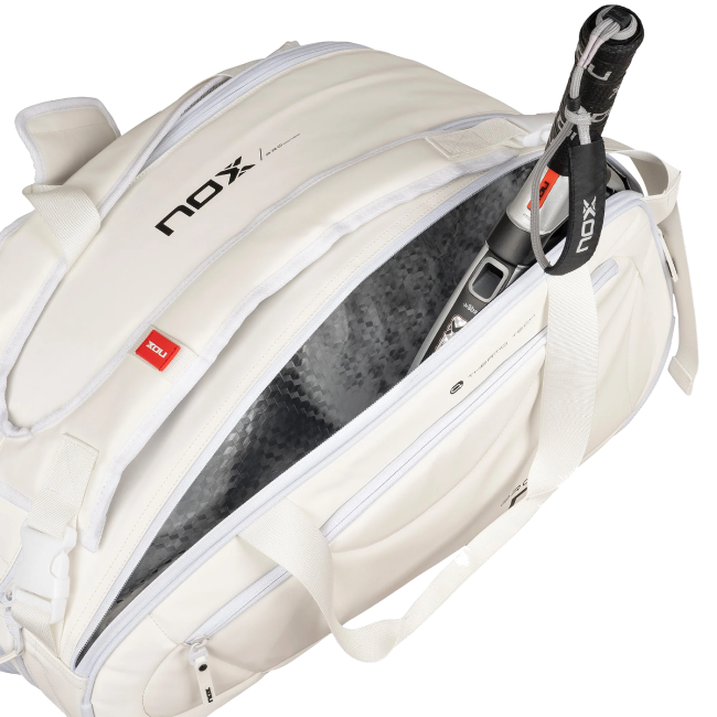 NOX PADEL Pro serijos rakečių krepšiai ir kuprinės yra pagaminti iš aukštos kokybės medžiagų, kurios garantuoja ilgaamžiškumą ir atsparumą.