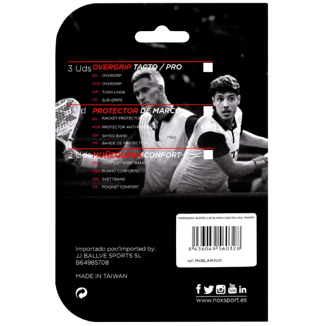 Maksimalus komfortas dėl medvilnės audinio kartu su nailono ir poliesterio pluoštais. Jame yra Nox „Balance Fresh” technologija, kuri izoliuoja prakaitą ir neleidžia raketei paslysti. Pakuotėje yra 2 vnt.
