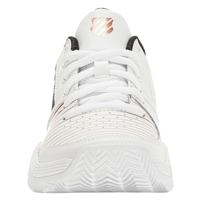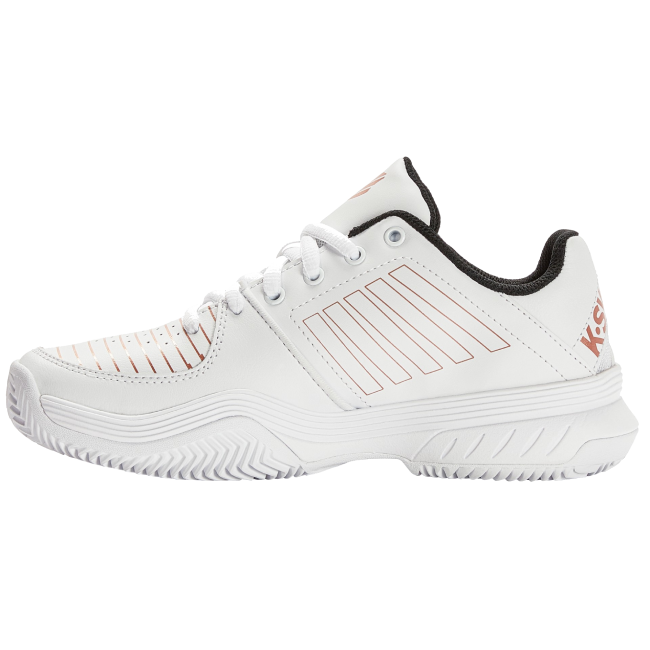K-SWISS Court Express HB – tai puikus pasirinkimas pradedančiosioms ir pažengusioms tenisininkėms, kurios ieško patikimos avalynės treniruotėms ar laisvalaikio žaidimui. Batų konstrukcija sukurta taip, kad užtikrintų optimalų komfortą, stabilumą ir ilgaamžiškumą, o HB tipo padas idealiai tinka žaidimui ant žvyro, dirbtinės žolės ar kitų dirbtinių dangų.