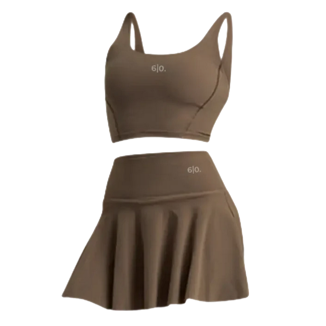 Šiame rinkinyje dera moteriška liemenėlė ir padelio teniso sijonas.