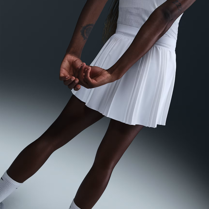 Moteriškas sijonas Nike Court Advantage Pleated – stilingas, klostuotas teniso sijonas su integruotais vidiniais šortais, Dri-FIT technologija ir tampriu juosmeniu – užtikrina komfortą, judėjimo laisvę ir elegantišką išvaizdą aikštelėje.