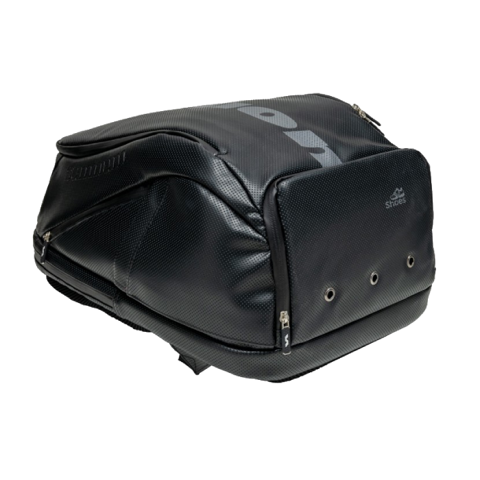 Elegantiška, perforuotos, sintetinės odos padelio kuprinė.